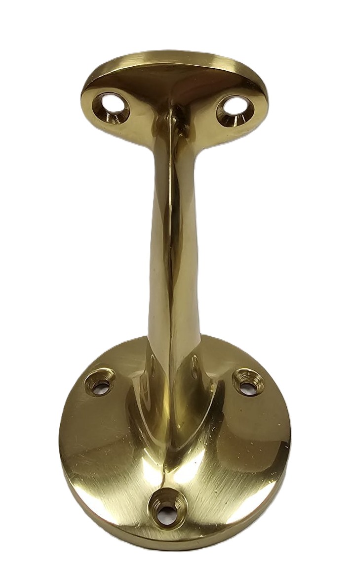 Support de main courante nostalgique pour balustrade en laiton massif et poli. Il s'agit d'une reproduction authentique d'après un modèle historique.
